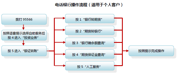 ·銀期轉(zhuǎn)賬:為您提供本人借記卡/單位銀行結(jié)算賬戶與期貨保證金賬戶之間資金的實(shí)時(shí)劃轉(zhuǎn),您可通過我們的網(wǎng)上銀行、手機(jī)銀行、電話銀行以及期貨公司的交易渠道辦理轉(zhuǎn)賬。機(jī)構(gòu)投資者使用網(wǎng)上銀行進(jìn)行轉(zhuǎn)賬。